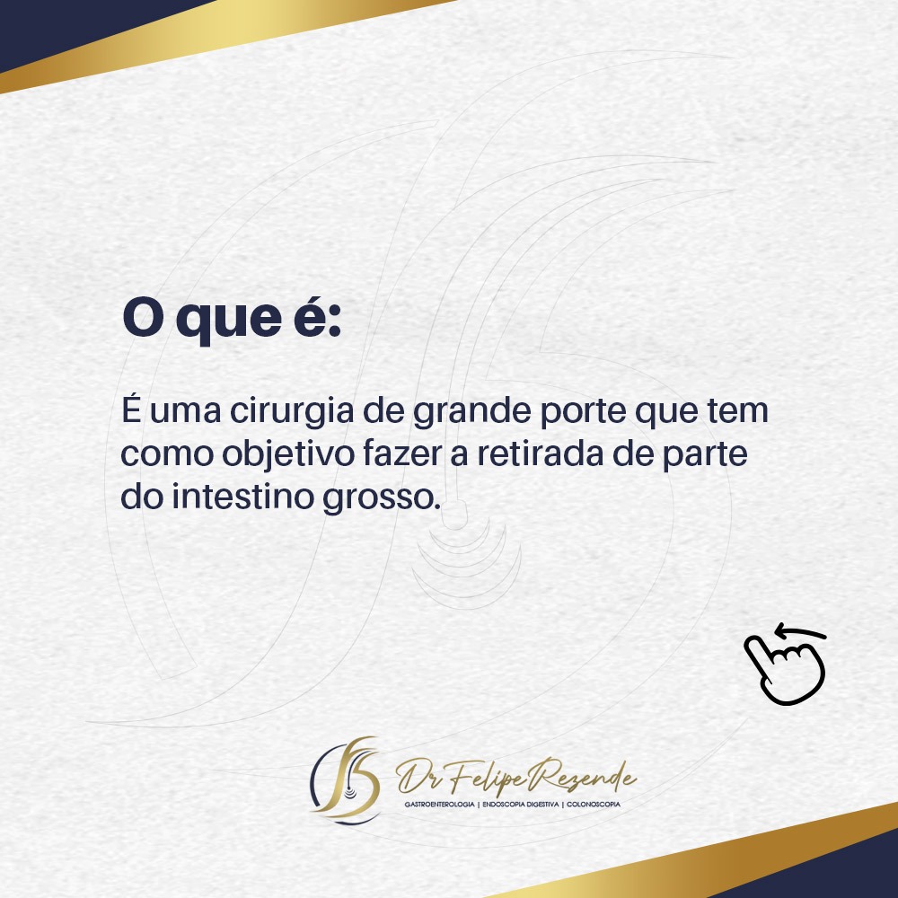 A colectomia trata-se de um procedimento cirúrgico de grande porte onde é realizada a retirada de parte ou de todo o intestino grosso e, apesar de ser uma cirurgia bastante invasiva, é a forma de tratamento mais eficiente e indicada no tratamento do câncer colorretal.