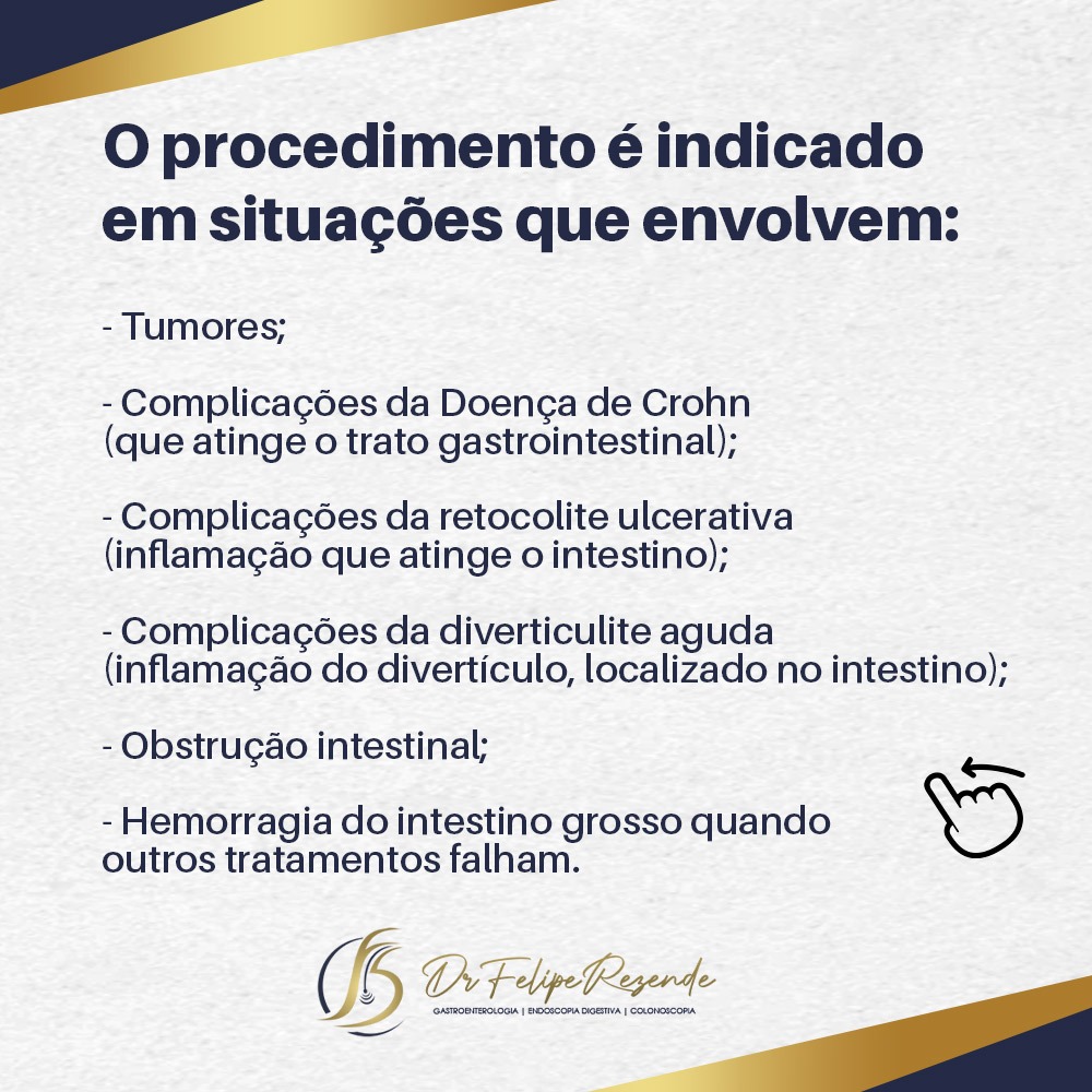 A porção do intestino que será removido na cirurgia é definida de acordo com a parte afetada, pois a principal intenção da mesma é remover por completo a parte afetada pelo tumor.