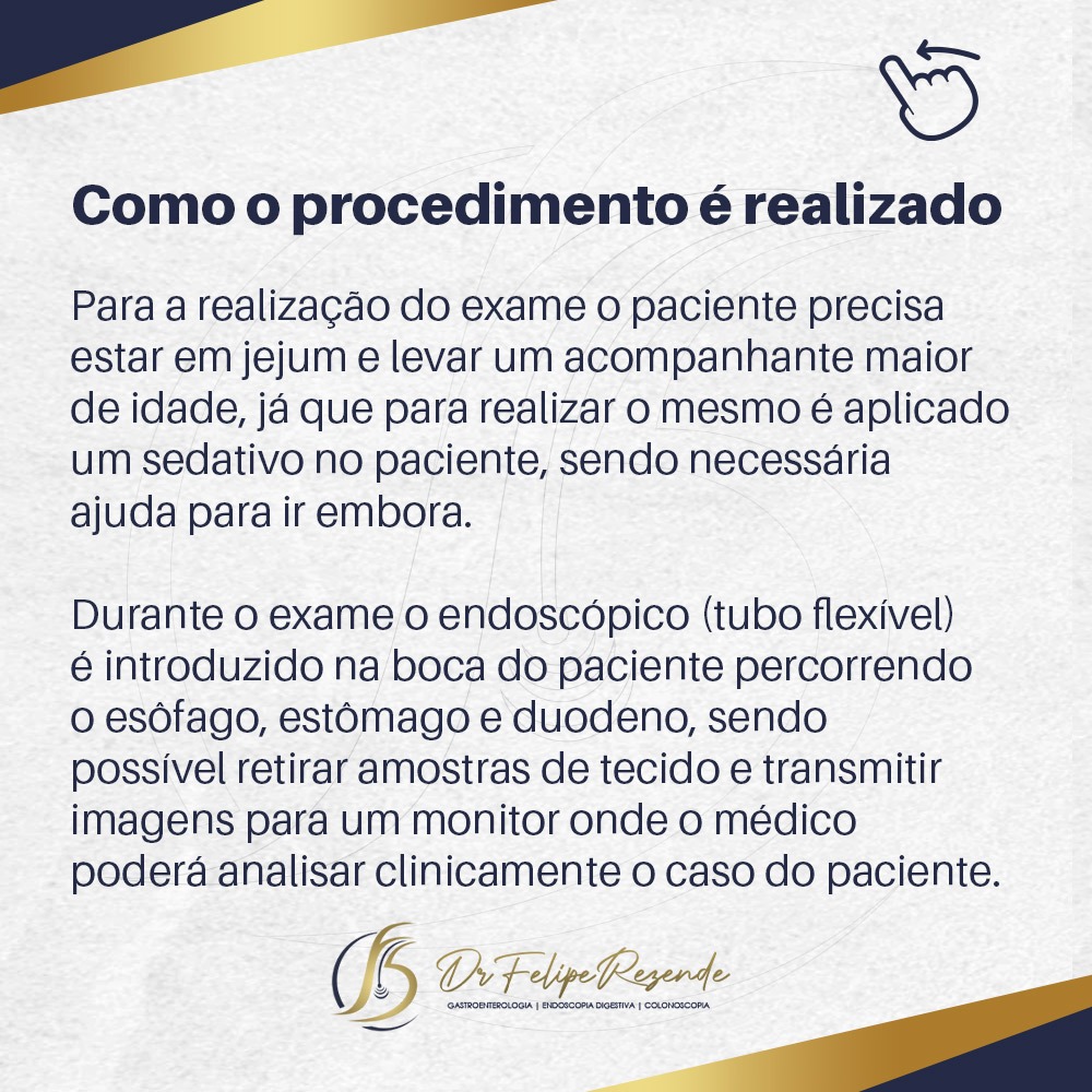 Uma curiosidade interessante sobre o procedimento é que, inicialmente, ele foi criado para diagnosticar a presença da bactéria H. pylori. Porém, hoje em dia o exame é indicado pelo médico gastroenterologista mediante diversas queixas como dor de estômago, dor abdominal, queimação, azia e refluxo.