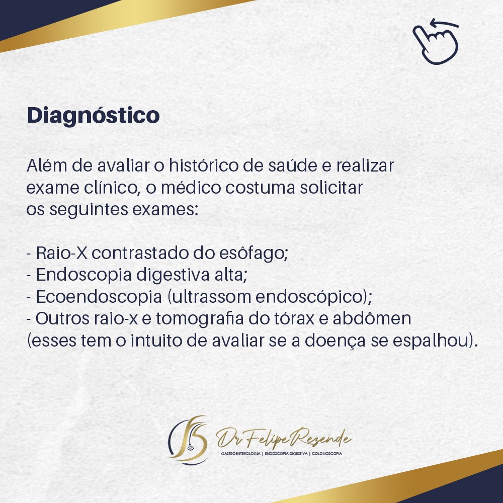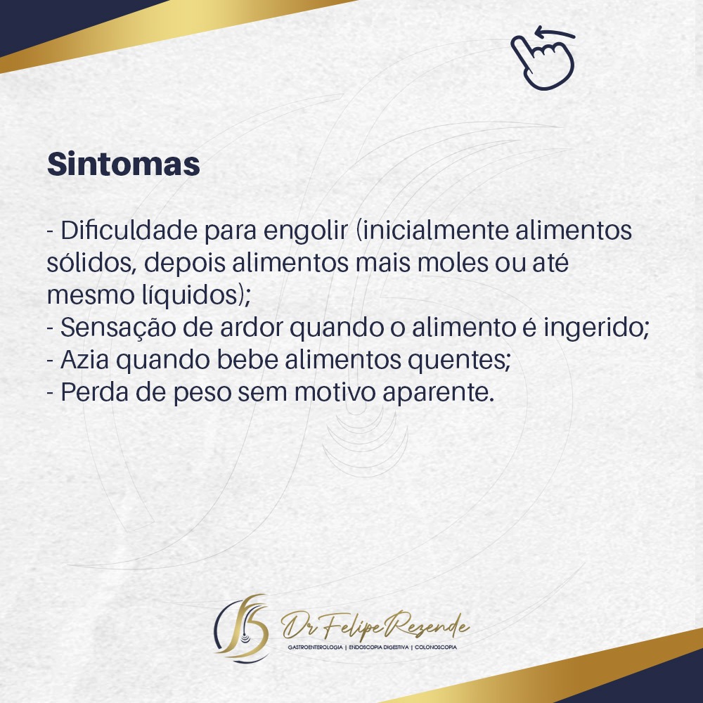 Nas imagens ao lado preparamos um material falando sobre os fatores de risco, sintomas, diagnóstico e tratamento do câncer de esôfago.