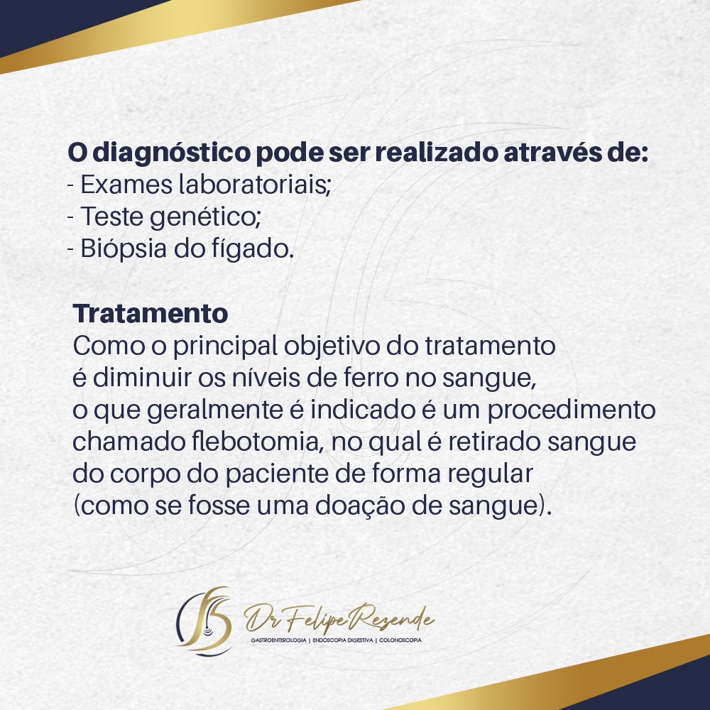 Apesar de, na maioria dos casos, ser uma doença hereditária com a qual a pessoa nasce, o mais comum é que ela se manifeste já na idade adulta, e os sintomas podem variar de pessoa para pessoa, a depender, por exemplo, da quantidade de ferro na dieta, consumo de álcool, entre outros fatores. No geral, os sintomas se apresentam mais nos homens e podem ser: