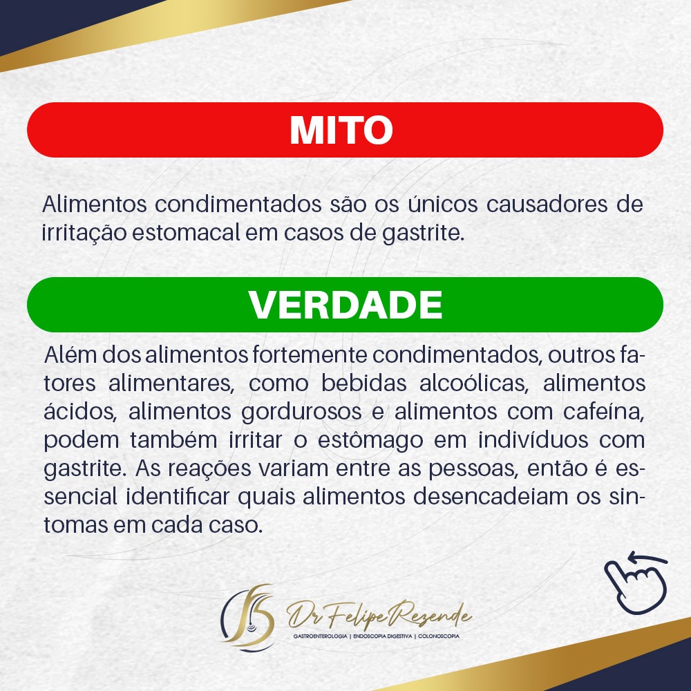 No universo das condições digestivas, a doença do refluxo gastroesofágico e a gastrite são temas que despertam muitas dúvidas. Nas imagens ao lado vamos desmistificar alguns mitos que muitas pessoas ainda pensam ser a verdade.