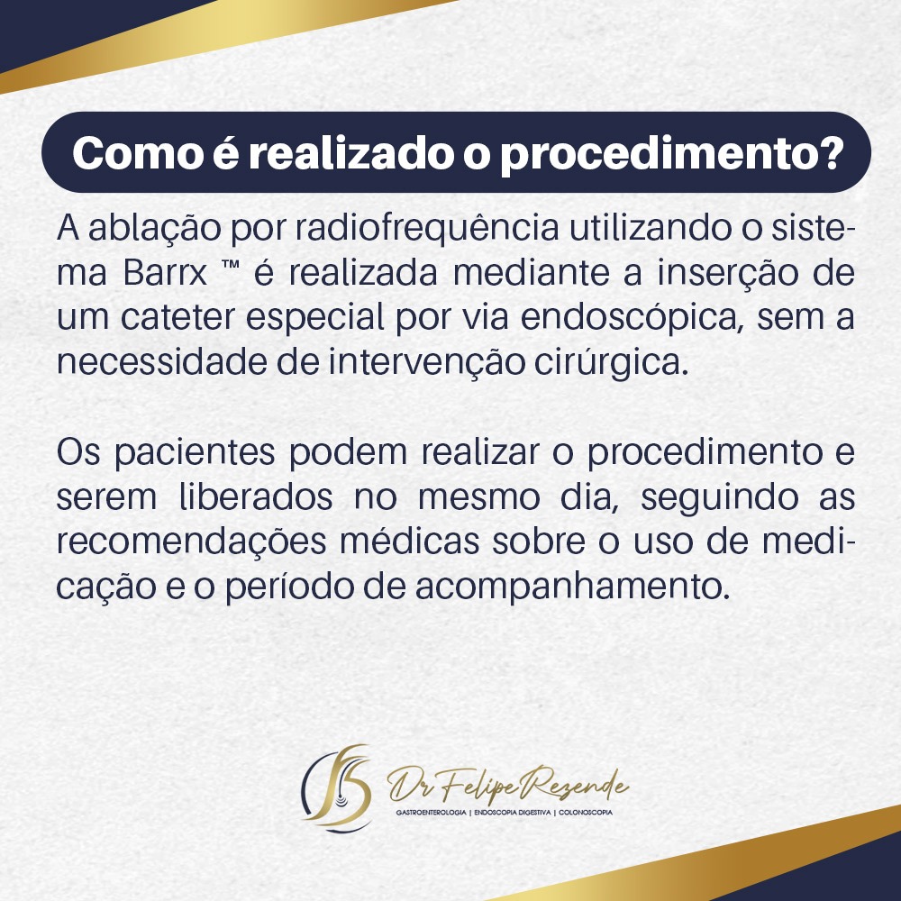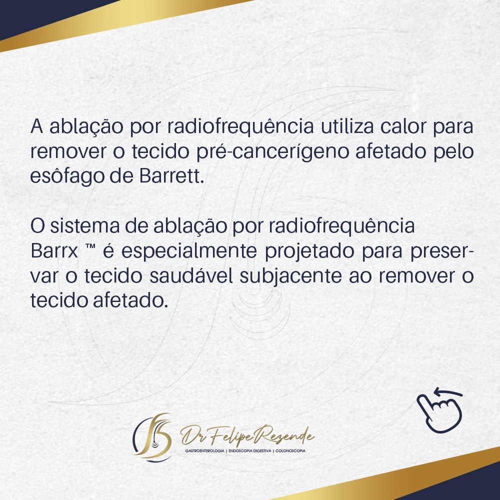 Uma das opções de tratamento eficazes disponíveis é a ablação por radiofrequência, realizada por meio da endoscopia. Essa abordagem tem demonstrado resultados promissores na redução do risco de progressão do esôfago de Barrett para displasia de alto grau ou câncer.