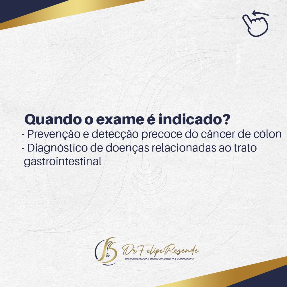 A colonoscopia, assim como a endoscopia é realizada com um tubo flexível, porém, nesse caso tem como objetivo examinar o cólon (intestino grosso) e também o íleo terminal (porção final do intestino delgado).