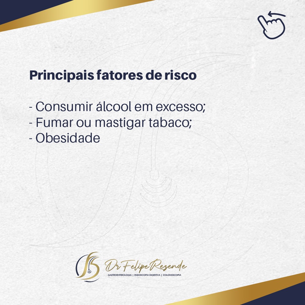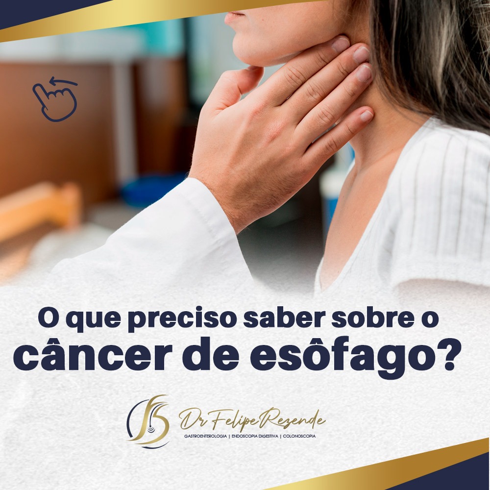 Nas imagens ao lado preparamos um material falando sobre os fatores de risco, sintomas, diagnóstico e tratamento do câncer de esôfago.