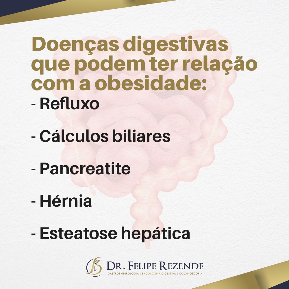 E quando o assunto é obesidade, o comprometimento da saúde do sistema digestivo não fica para trás, existem diversas doenças digestivas que podem ser desencadeadas por conta do excesso de peso.